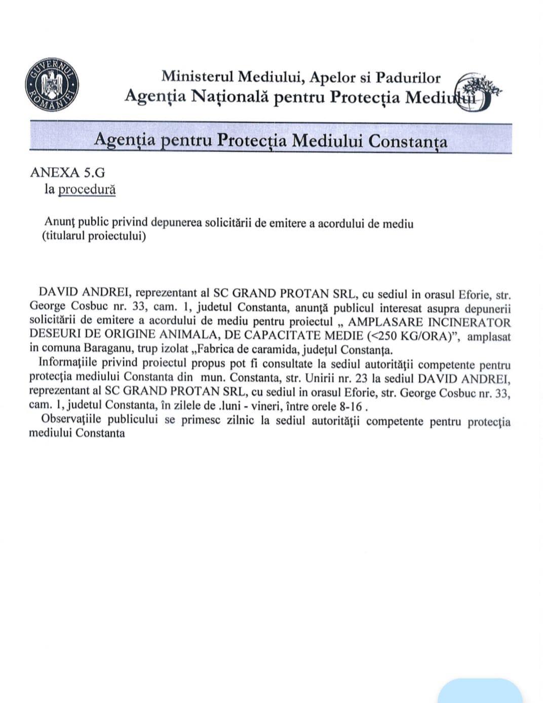 GRAND PROTAN își are ca obiectiv incinerarea deșeurilor SNCU de origine animală pentru a asigura un mediu cât mai curat și sănătos pentru